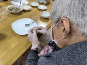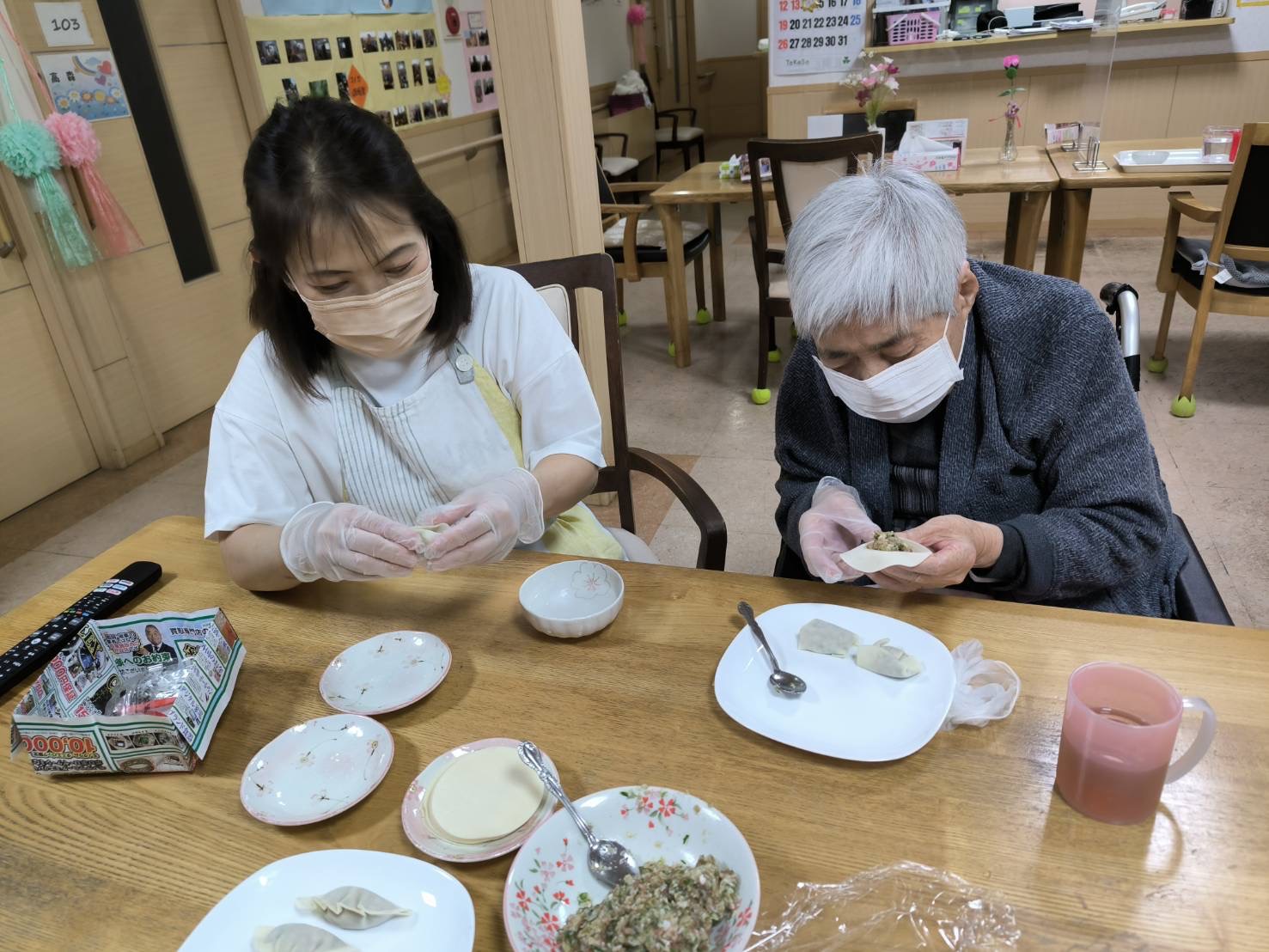 とある日の昼食に餃子が出た日があり、男性入居者さんが今度は俺が作ると仰ったのでそれじゃあみんなで作ろうという話になり