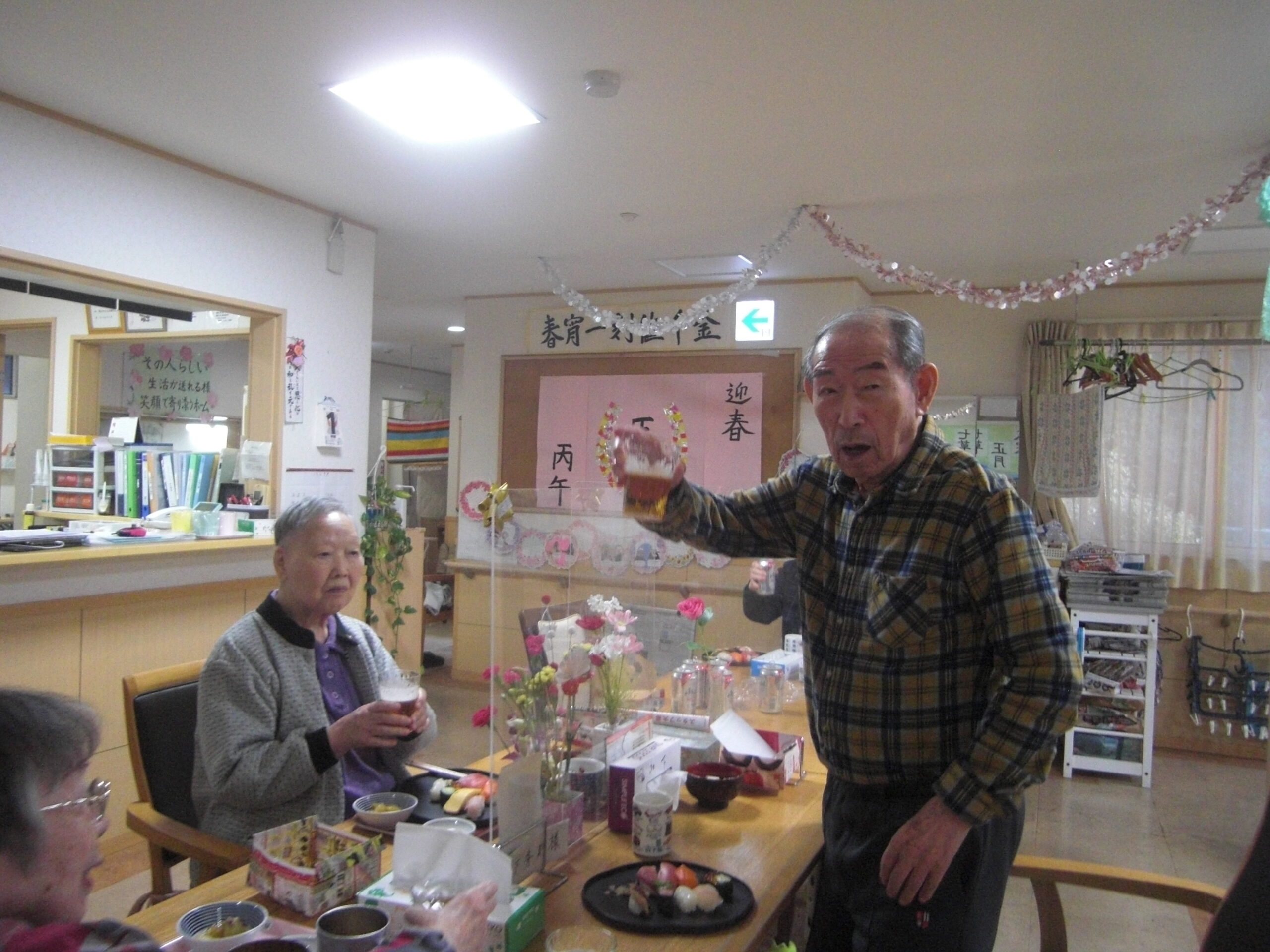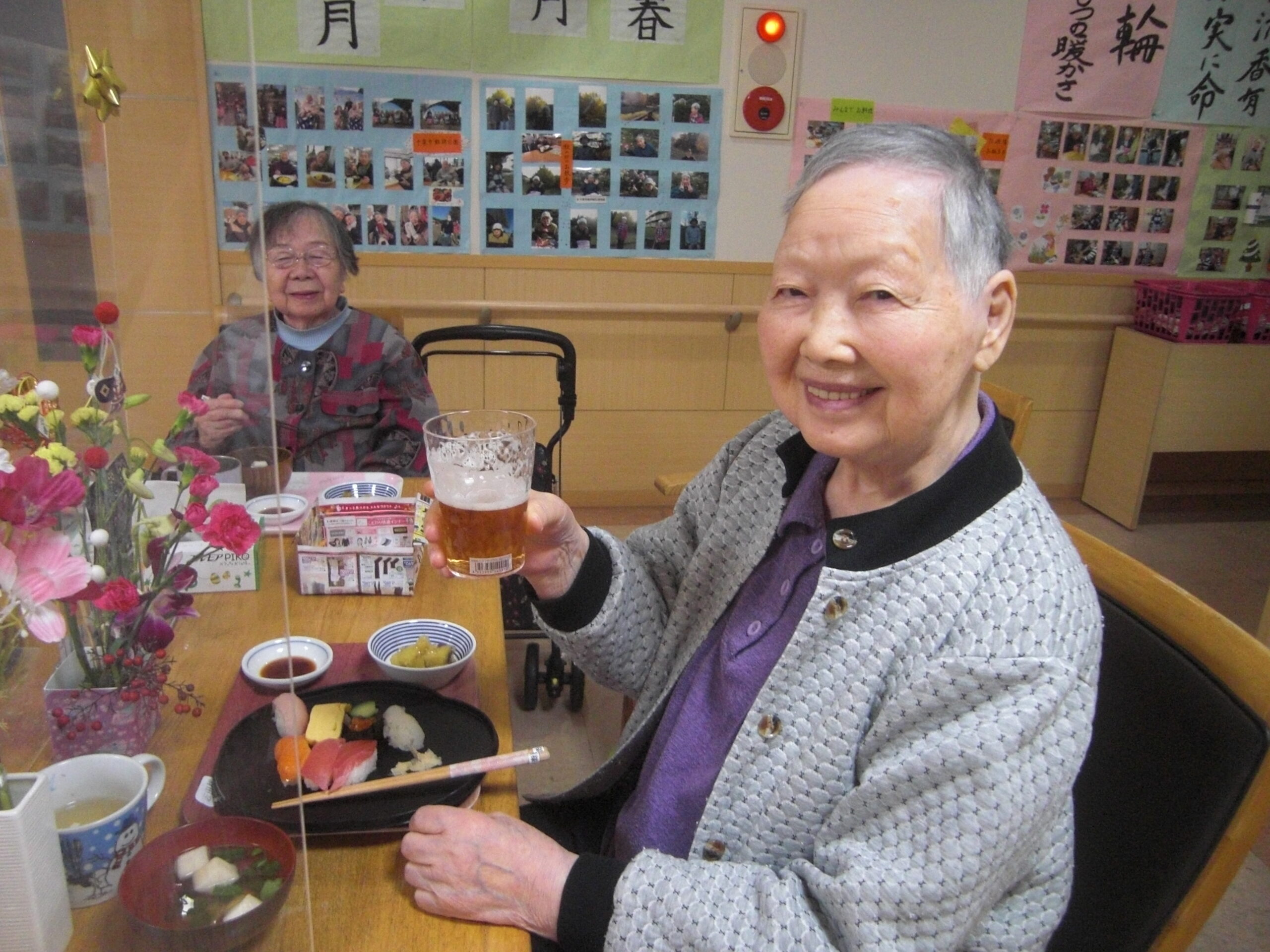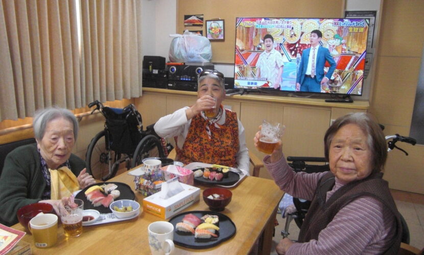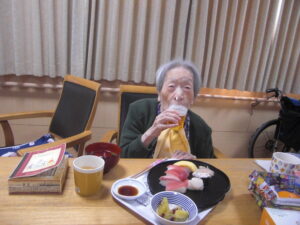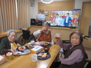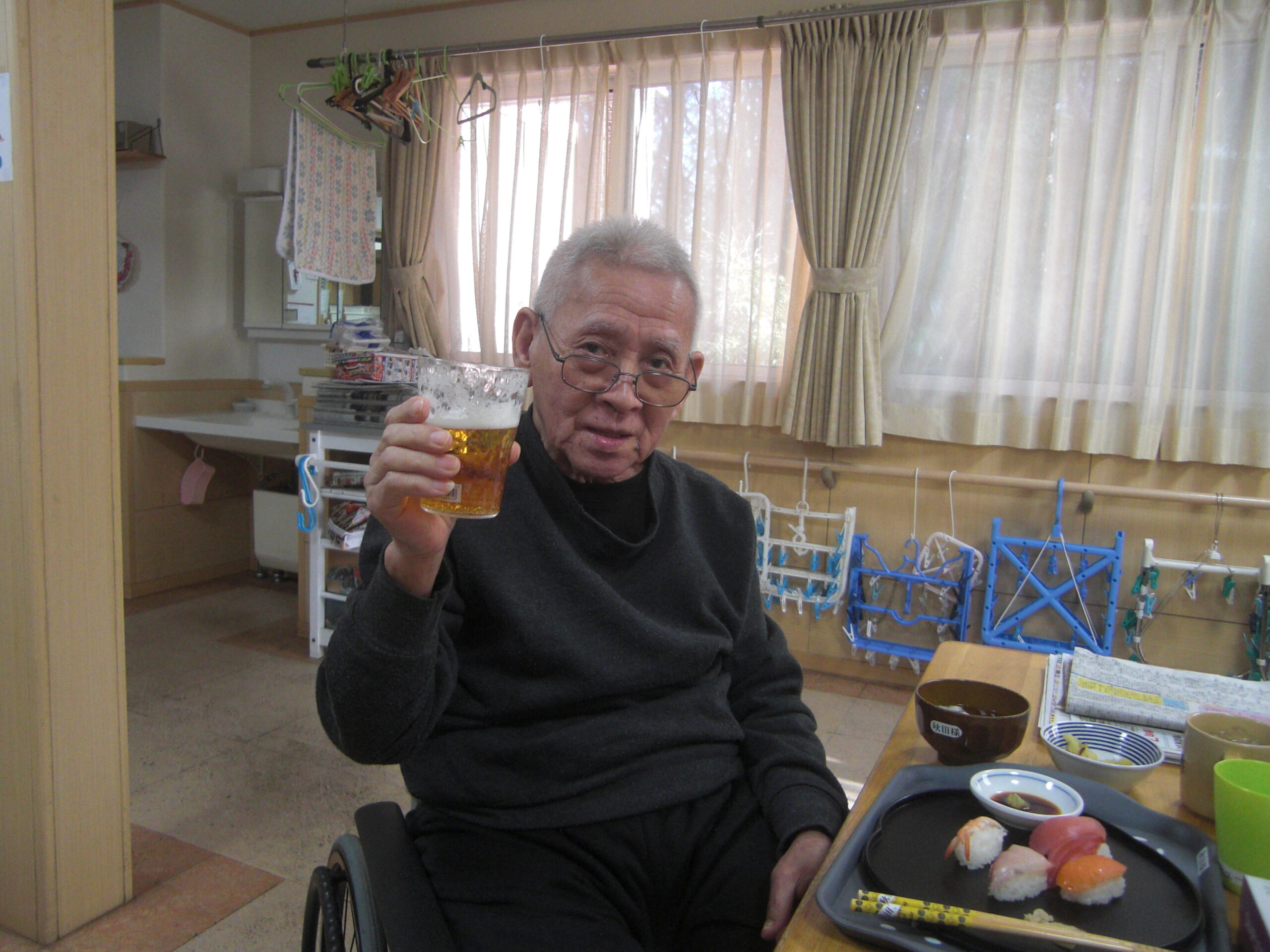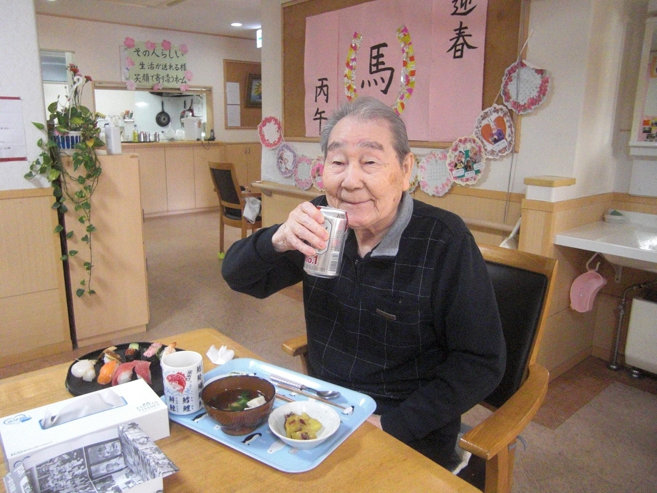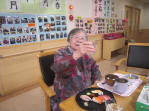 こもれびの郷マウントバード通信 こもれびの1月 年明け更新が遅くなってしまいました。 初詣に行ったり、かるたや福笑いなどはもちろん、元旦にはお寿司に加えノンアルコールビールで新年をお祝いしました。 その他外食や天気の良い日に庭でおやつを食べたり年が変わっても変わらない日常を過ごしています。 今年もよろしくお願いします。新年なのでいつもより写真多めでお届けします。動画ファイルを挿入していますのでご注意ください。(ご覧になりたい場合はリンクをクリックしてください) IMG_2337