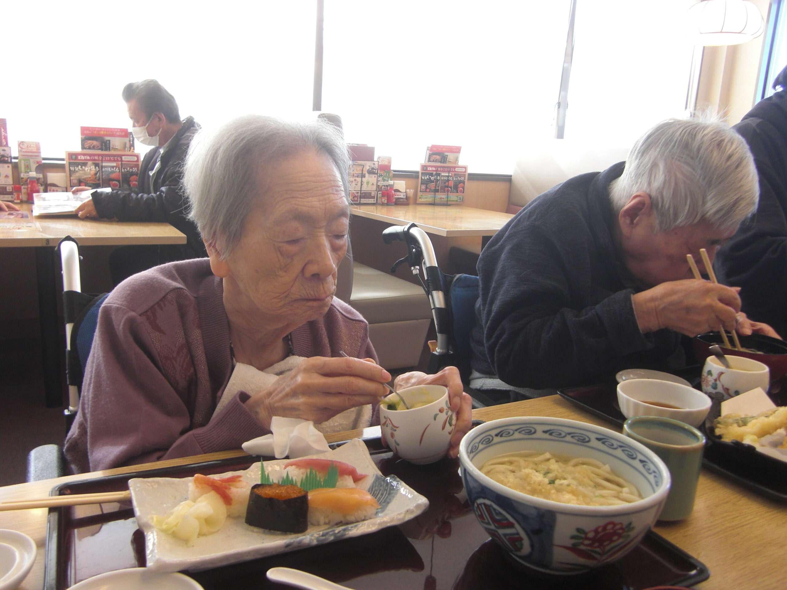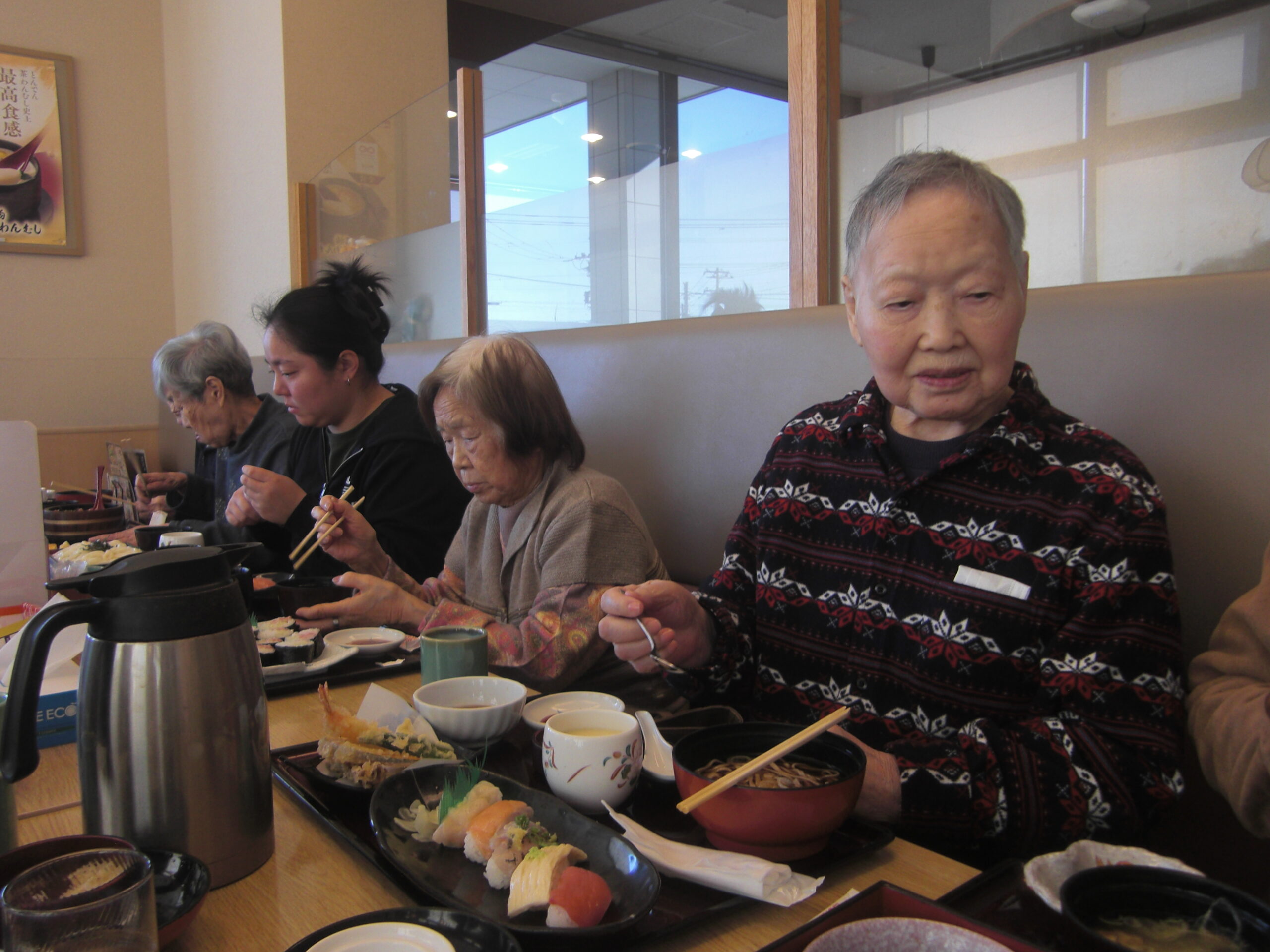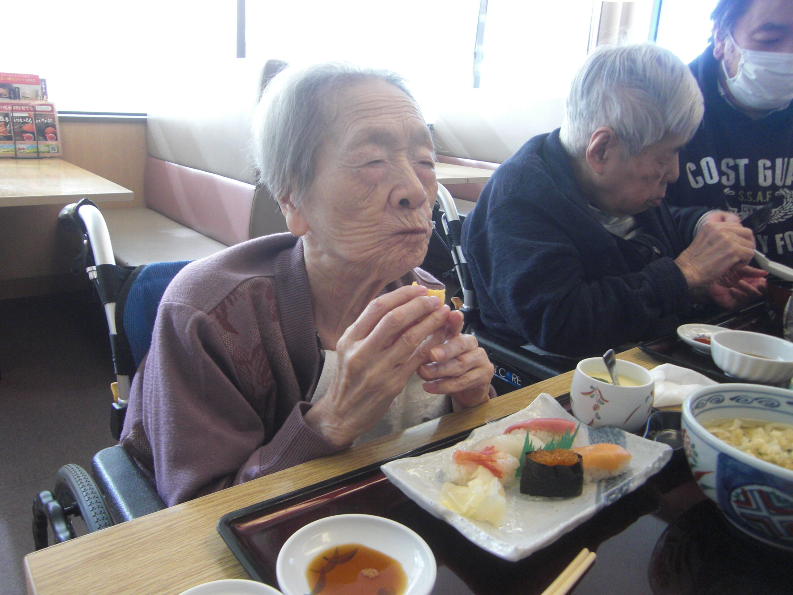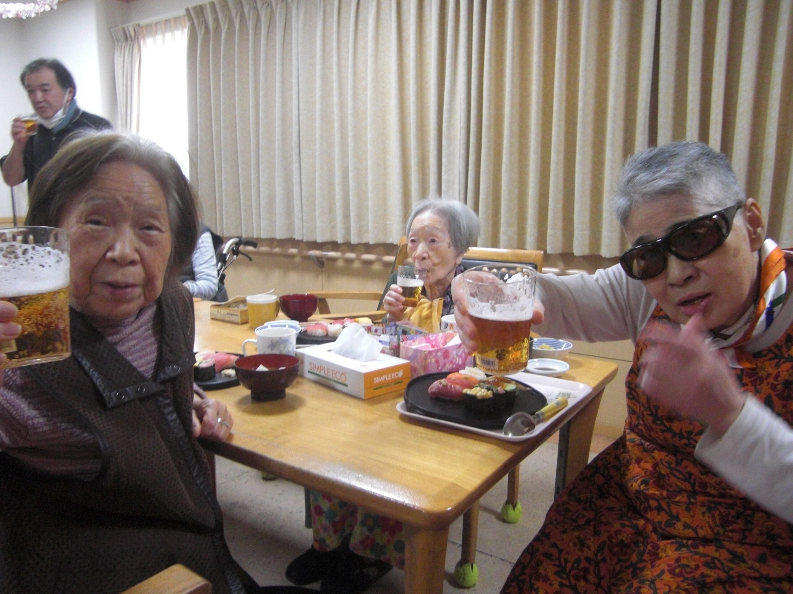 こもれびの郷マウントバード通信 こもれびの1月 年明け更新が遅くなってしまいました。 初詣に行ったり、かるたや福笑いなどはもちろん、元旦にはお寿司に加えノンアルコールビールで新年をお祝いしました。 その他外食や天気の良い日に庭でおやつを食べたり年が変わっても変わらない日常を過ごしています。 今年もよろしくお願いします。新年なのでいつもより写真多めでお届けします。動画ファイルを挿入していますのでご注意ください。(ご覧になりたい場合はリンクをクリックしてください) IMG_2337