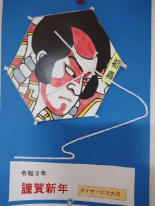 マウントバード通信 デイサービス大日のお正月 2021年1月 今年は新年の参拝に行けないご利用者様も多いので、デイサービス大日ではご利用者様に参拝の雰囲気だけでも感じて頂けるように凧や熊手や絵馬を手作りしていただき、皆様に願い事を書いてもらいました!