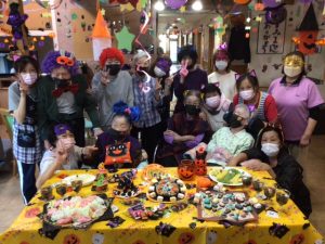 各フロアでハロウィンパーティーをしました。準備も入居様と一緒に行いました🎃アイデア満載のお料理とケーキをご覧ください🍰🥘