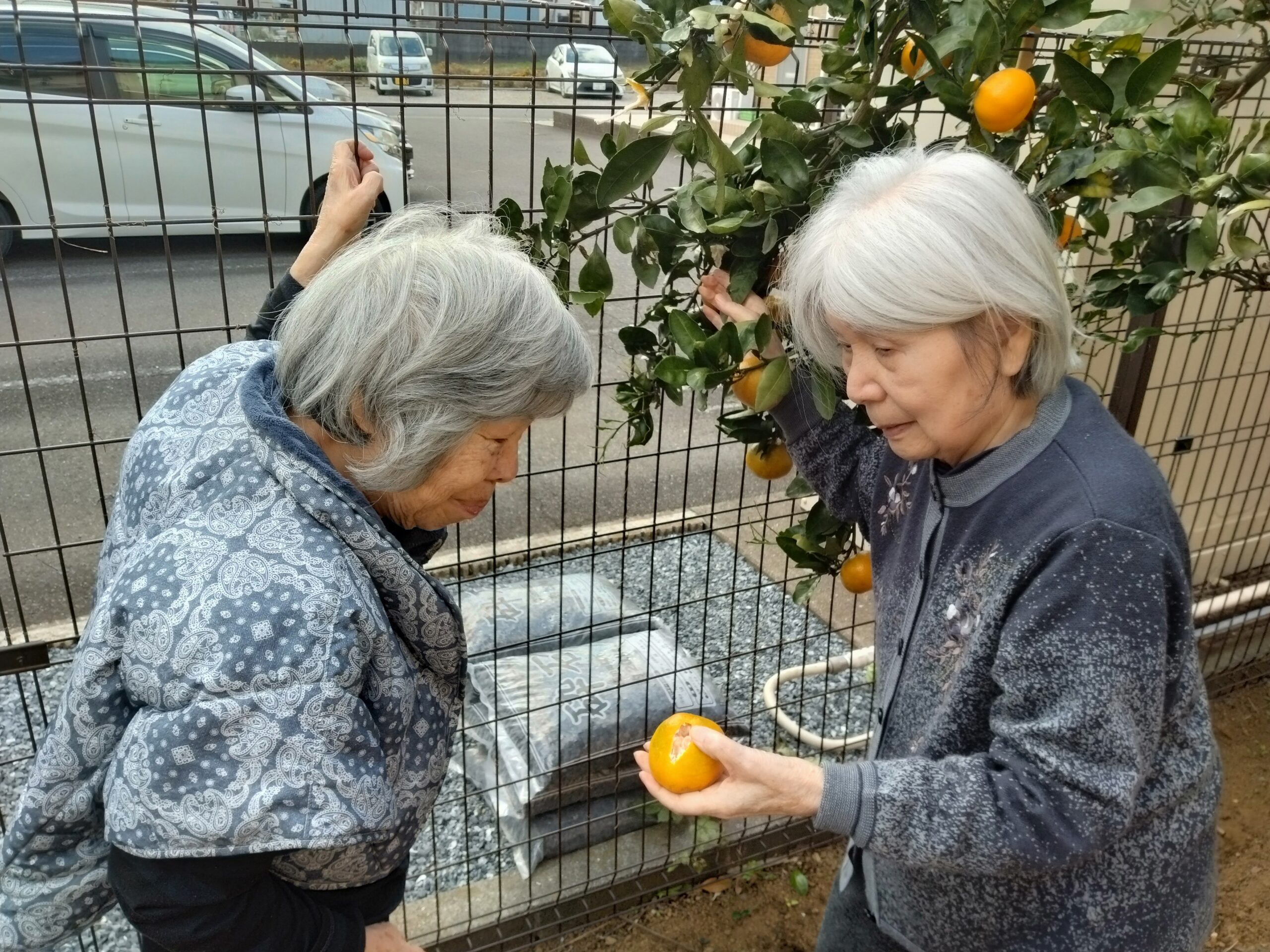 ちぐさの家マウントバード通信 今年は豊作🍊~ちぐさの家~ 今年はちぐさの家の庭のみかんが大豊作でした! 2回ほど袋いっぱい取ってきても、 まだ残っている状態です!(^^)! みなさん、取るときは真剣そのもの! そして、、、にんまり☺ 美味しい美味しいと大満足でした😋 また来年もたくさん実りますように。。。