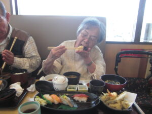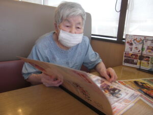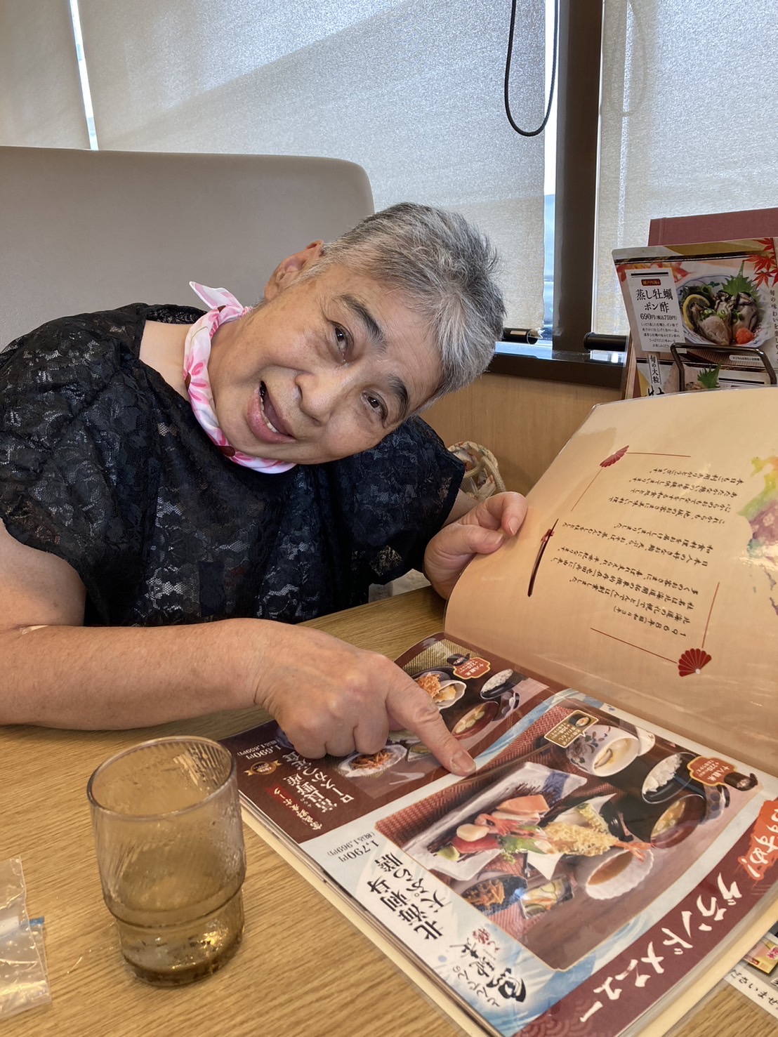 こもれびの郷マウントバード通信 敬老会 こもれびの郷 敬老の日にとんでんへ外食へ行きました。 外へ出て食べたい物を、写真などで想像しながら選んで食べる大切な事です。 敬老の日とは関係ありませんがこもれびの郷では現在自分で選び喜び楽しみを増やしていくと言う事を施設として取り組んでいて 今回の外食だけではなく、10時のお茶の時間に選択肢を増やして選んでもらうなど 日常的に入居者様が自ら選択できるシーンを少しづつ増やしていけたらと思っています。