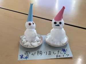マウントバード通信みどりの家 雪だるま (みどりの家) 新年早々に雪が降ったので、雪だるまを作り季節を感じて頂きました。 一面の雪景色に、故郷を思い出す方、驚かれる方、皆さま多様な反応をされていました。 雪だるま R4年初雪 雪だるまと記念撮影 雪だるまと記念撮影